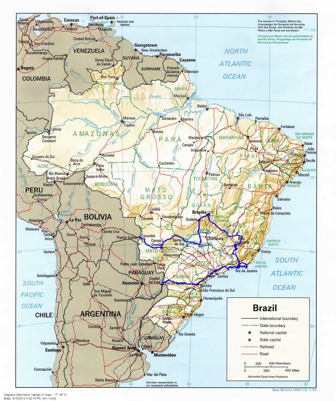 Leaving Rio was an absolute nightmare. We took the wrong turn near the start of our trek. Instead of going back and taking the correct turn, we continued. After all we do have our infallible GPS! Unfortunately it does not have a map of Brazil loaded and Rio has all these high, non negotiable hills. We just couldn't find the way back to the correct road. After going through several favellas and driving along some bad urban roads we eventually came upon it. How to get on? After going around in circles, literaly, for a while we asked another driver. He very kindly led us onto the highway through some back streets. On our way at last. There was one good thing about the trek - always a silver lining! - we found a shop selling exactly the right tyre to replace the one ruined in Bolivia.